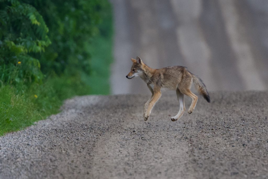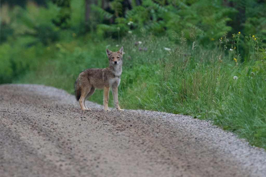 The following week I had one sighting. My mind was wandering at the time and I wasn’t concentrating on a possible coyote sighting.  What must I pick up from the store on the way home?  How could I improve the feature story I was working on?  Then, a hundred metres ahead, I saw the pup run across the road and into some woods.