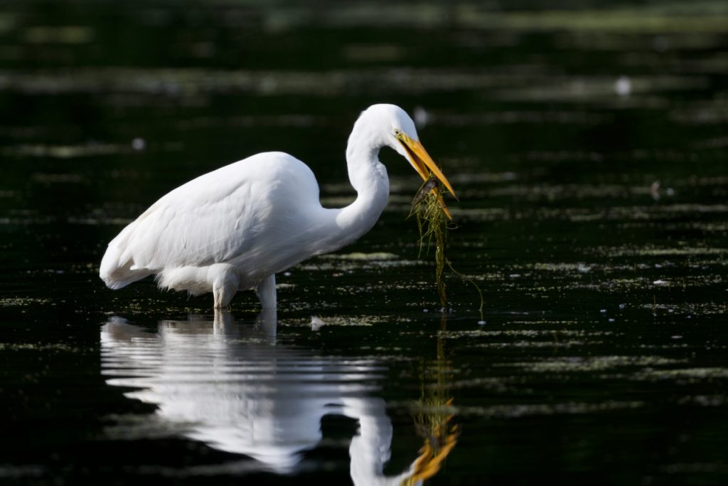 This egret swallowed a minnow along with a salad. Must eat vegetables!